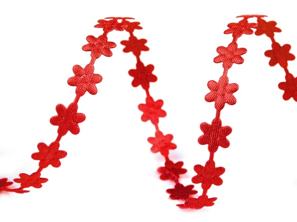 Декоративная отделочная лента в виде меленьких цветочков красного цвета. Размер цветка 0,8 х 0,8 см. Пригодится и для шитья, и для упаковки подарков, и для создания поделок из текстиля. Для скрапбукинга, рукоделия, шитья игрушек, создания украшений.