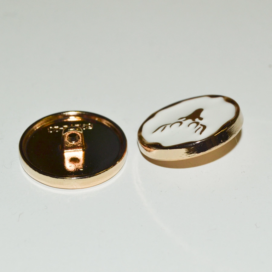 Металл золотистого цвета, внутри пуговицы белая эмаль.