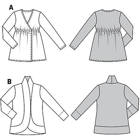 Рекомендуемые ткани:А- легкие х/б ткани, вискоза, трикотаж, В- вязаные полотна.
