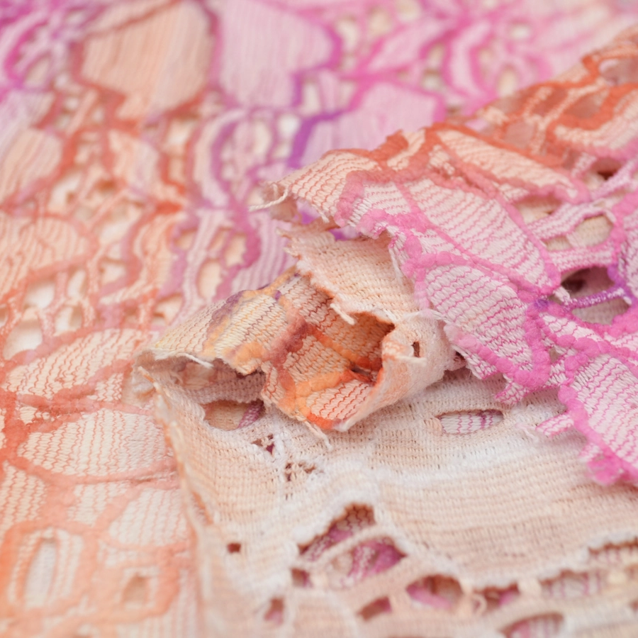 Итальянская хлопковая кружевная ткань приятна в носке, красива в изделии. Ткань тонкая, пластичная, мягкая, хорошо драпируется. Добавление эластана делает кружево комфортным в носке. Хорошо подойдет для туник, маек, футболок, комбинезонов, свободных брюк, длинных юбок, летящих сарафанов, и, конечно же, красивых платьев. На "секретные" места потребуется подкладка, лучше - телесного цвета, но и контрастные цвета в тон основного будут уместны. Выбирайте простые фасоны - например, платье-футляр слегка прилегающего силуэта - ткань настолько красива, что никакие сложности не нужны.