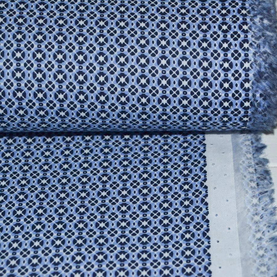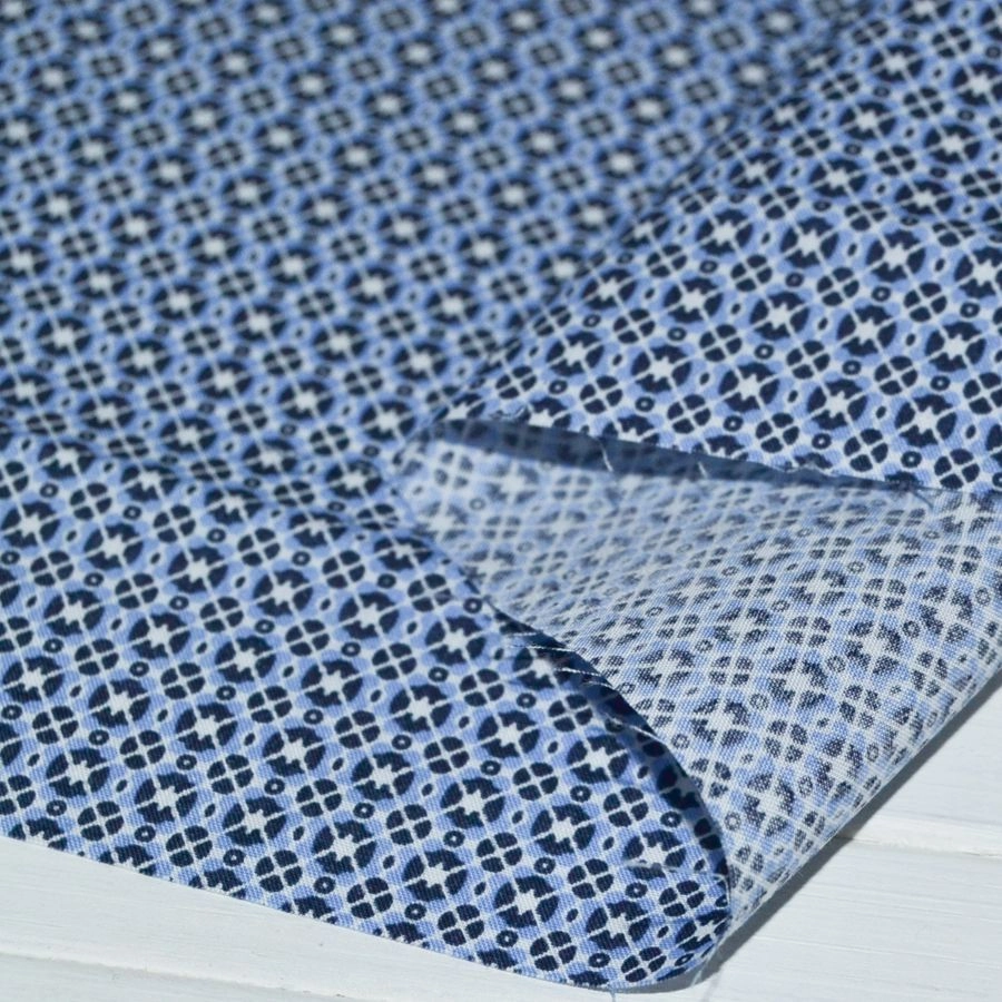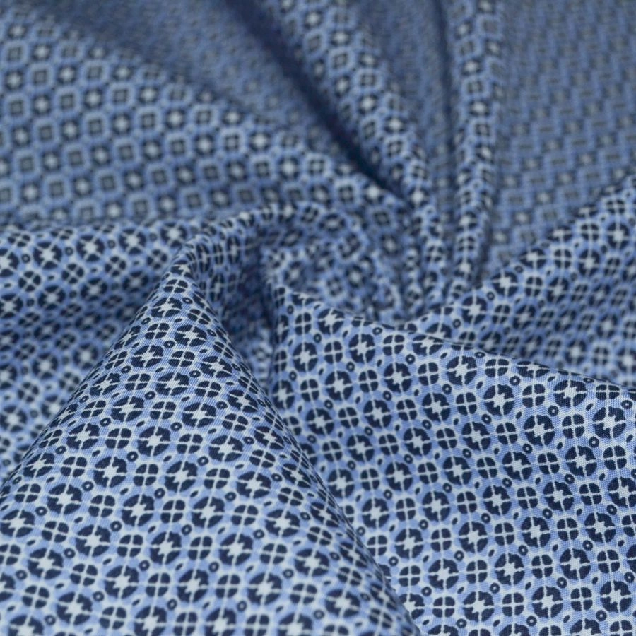 Тонкий высококачественный плательно-рубашечный хлопок-поплин с мелким геометрическим рисунком в сине-голубых тонах.