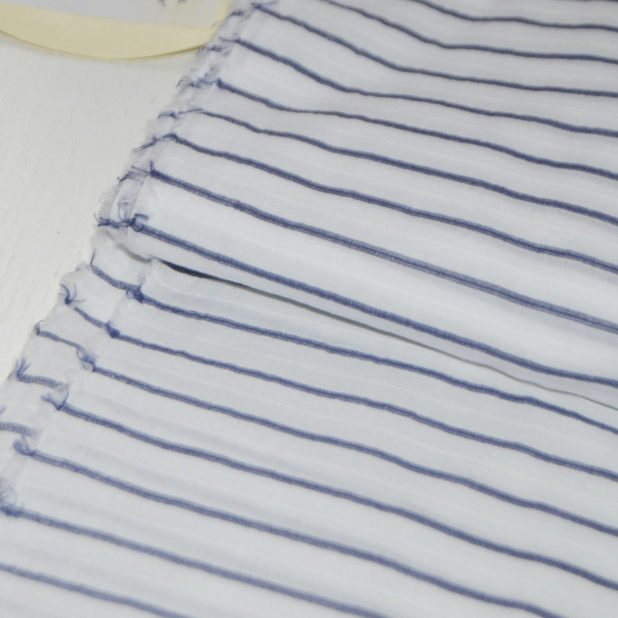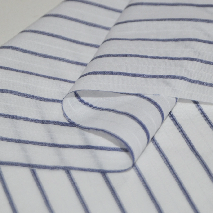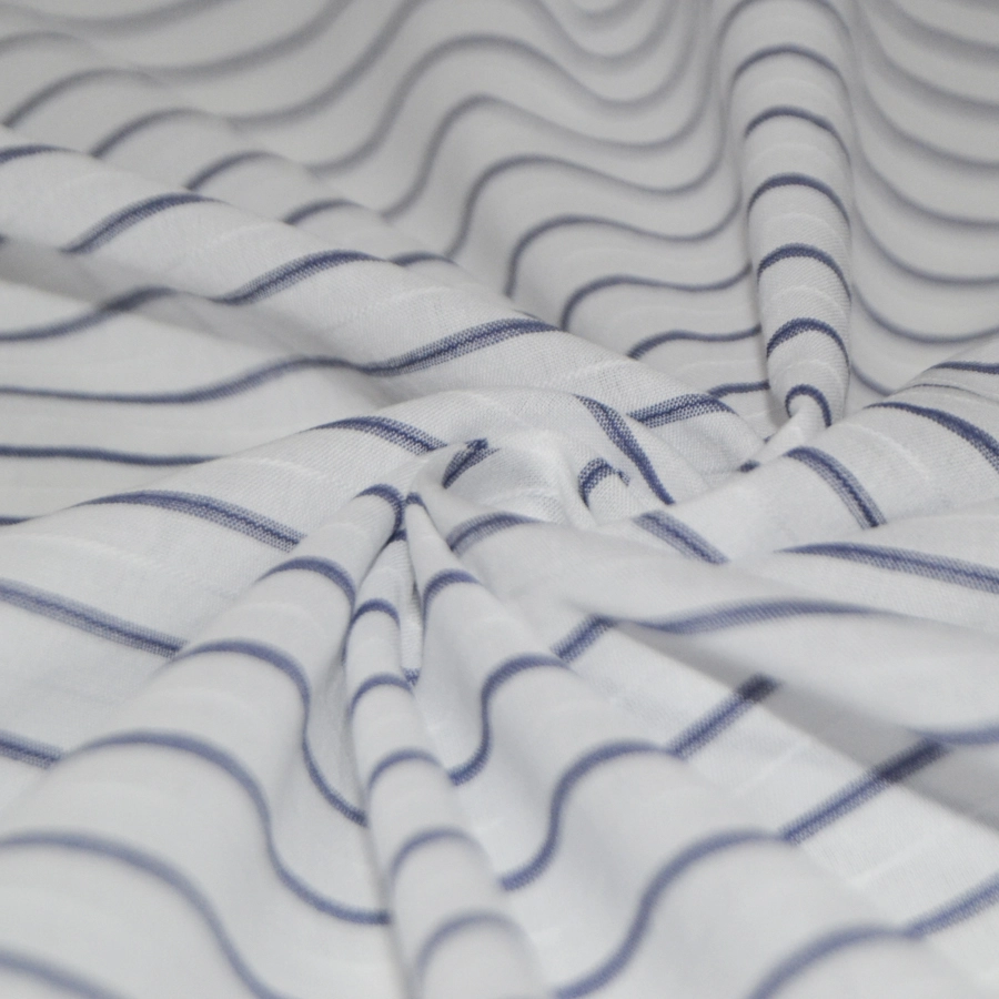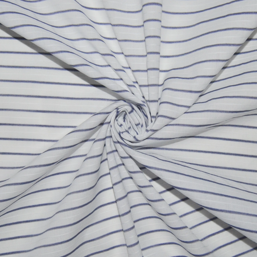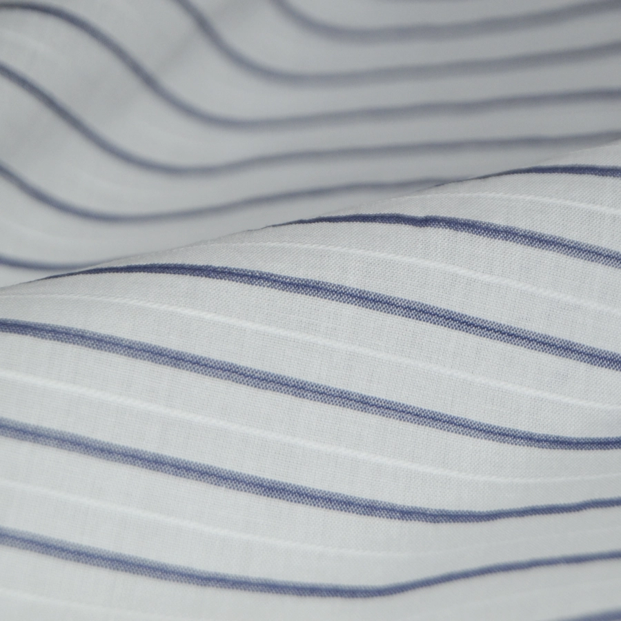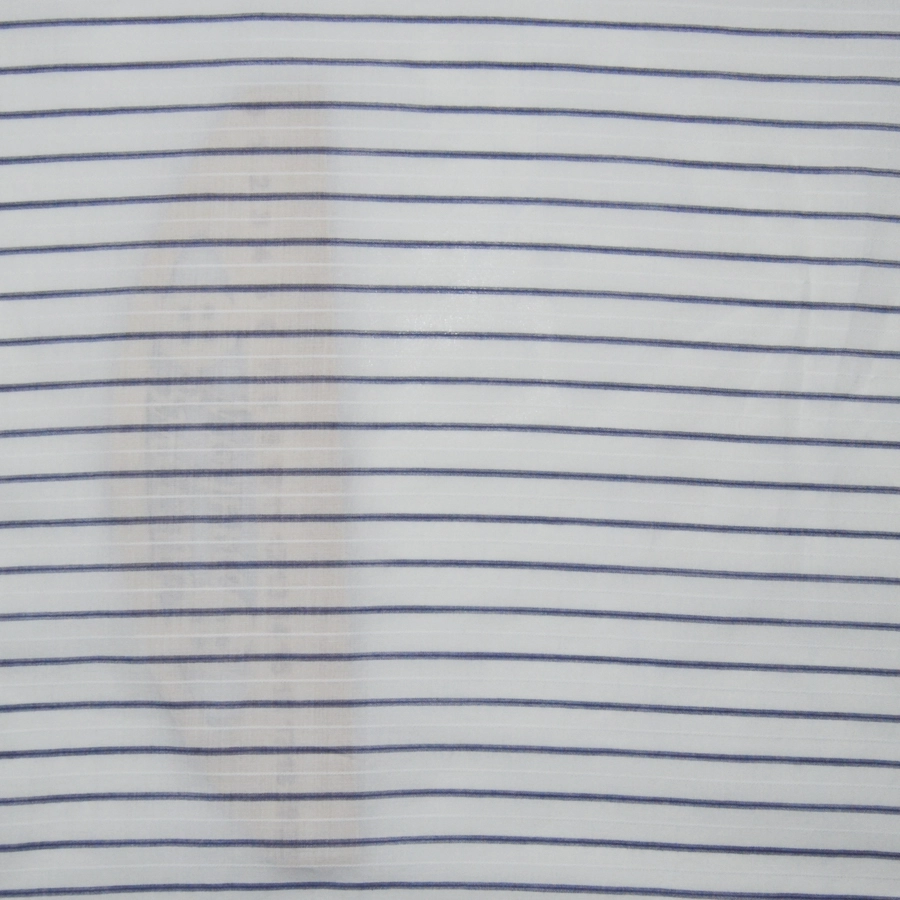 Высококачественный тонкий хлопковый батист белого цвета с тонкой поперечной графитово-серой полоской,дополненной едва заметной белой жаккардовой полоской.