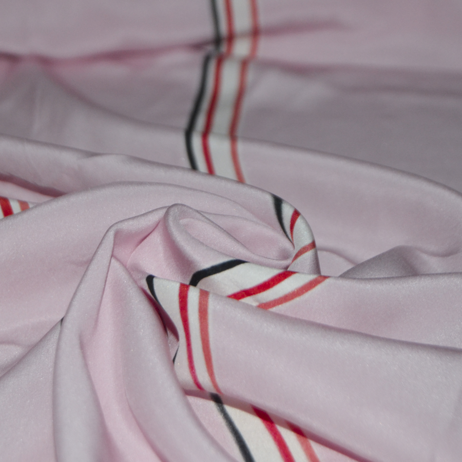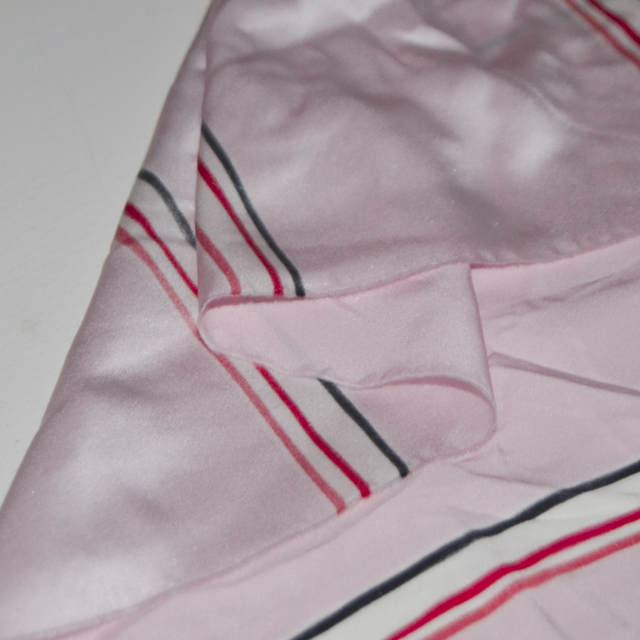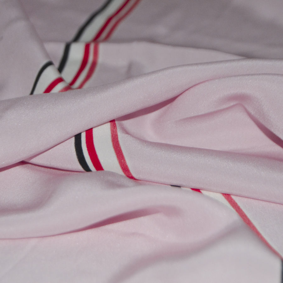 Приятный розовый тон и тонкие вертикальные полосы разного цвета.