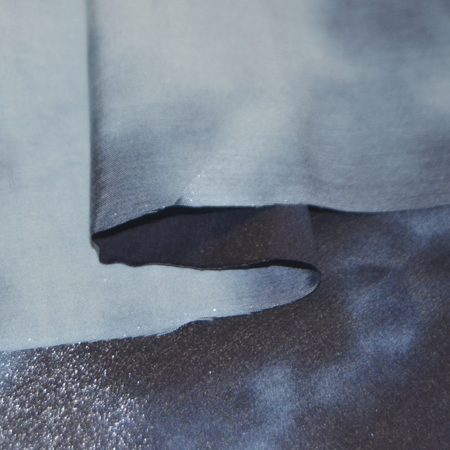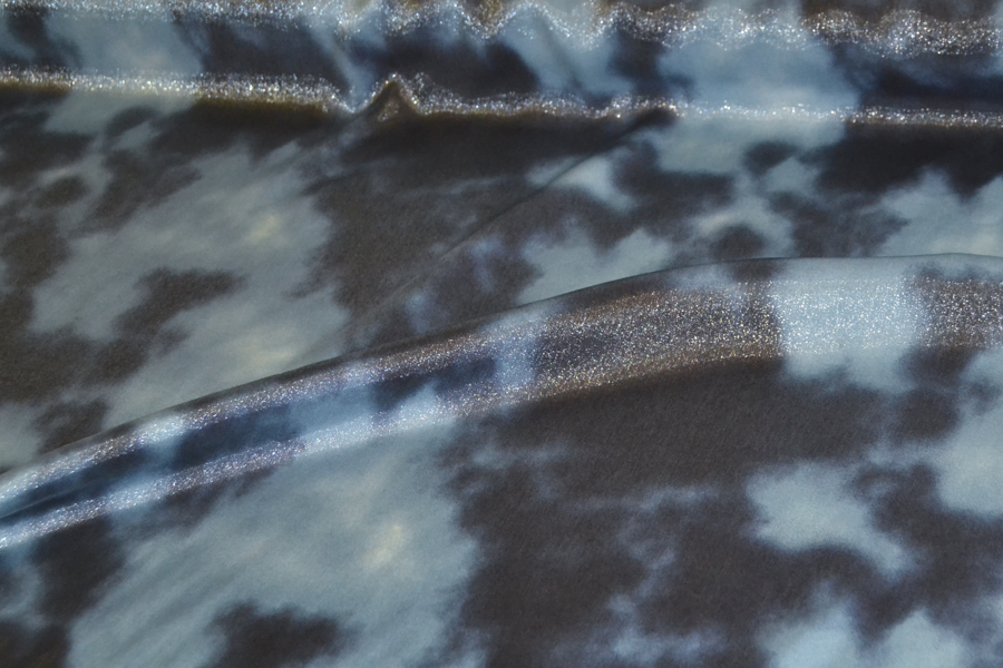 Абстрактный принт в виде муаровых разводов, где элегантно переплетаются оттенки черного и синего цвета.