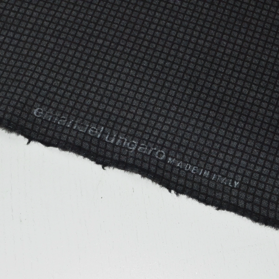 Плательно-костюмная шерсть-фланель темно-серого цвета в мелкую клеточку,образованную нитями черно-коричневого оттенка.