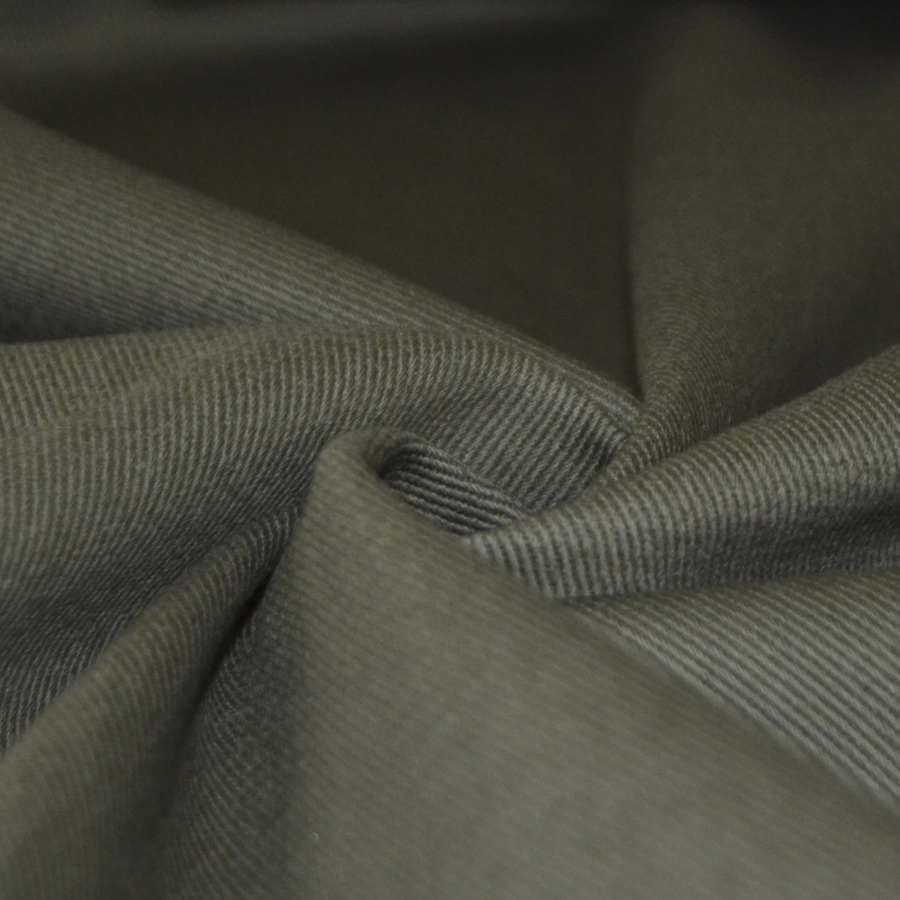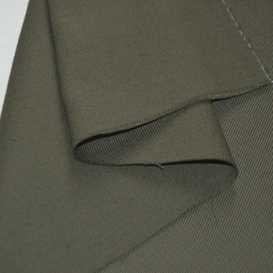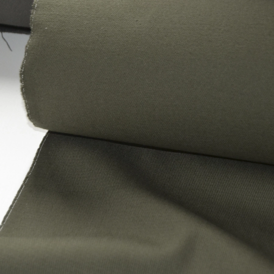 Мягкая, но плотная джинсовая ткань цвета хаки от премиального бренда.