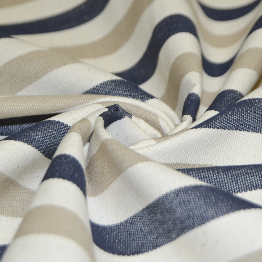 Тонкий плательно-костюмный канвас с горизонтальной полоской, который идеально подходит для пошива летних изделий.