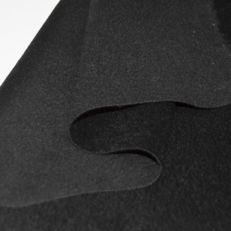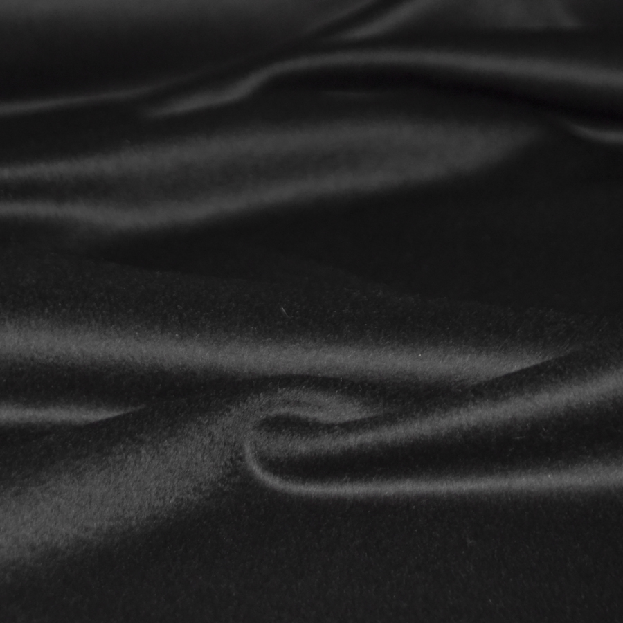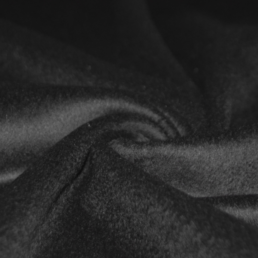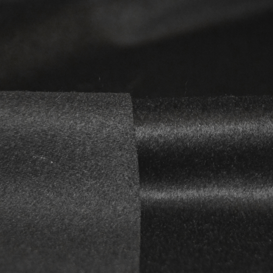 - Элегантный лоск: Короткий, идеально приглаженный ворс придает ткани глубокий, благородный блеск, который завораживает и притягивает взгляды. Угольно-черный цвет подчеркивает изысканность и универсальность материала.