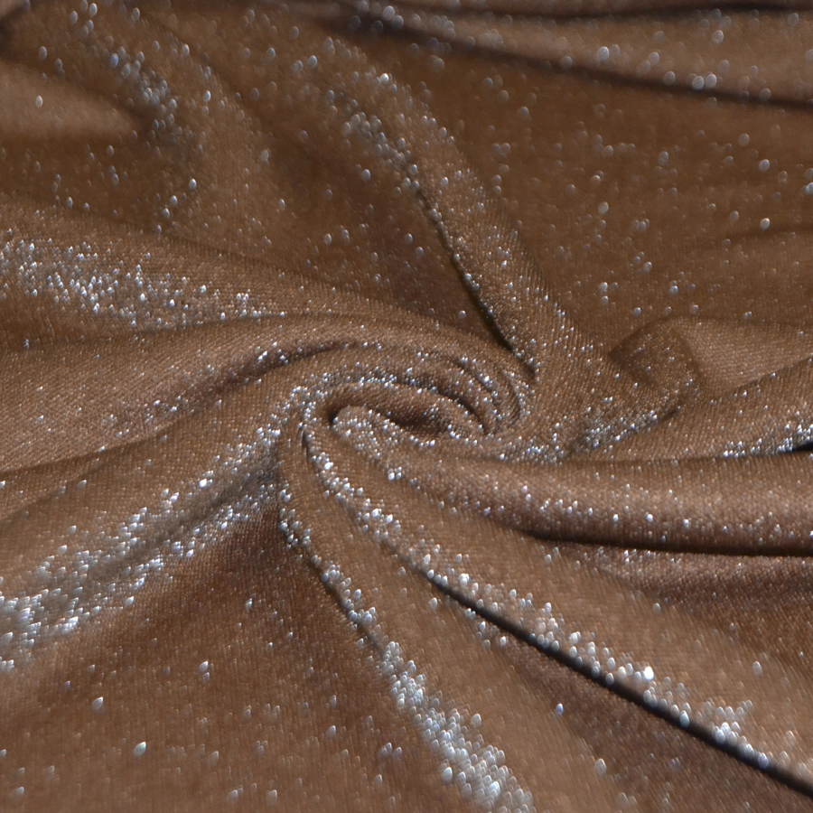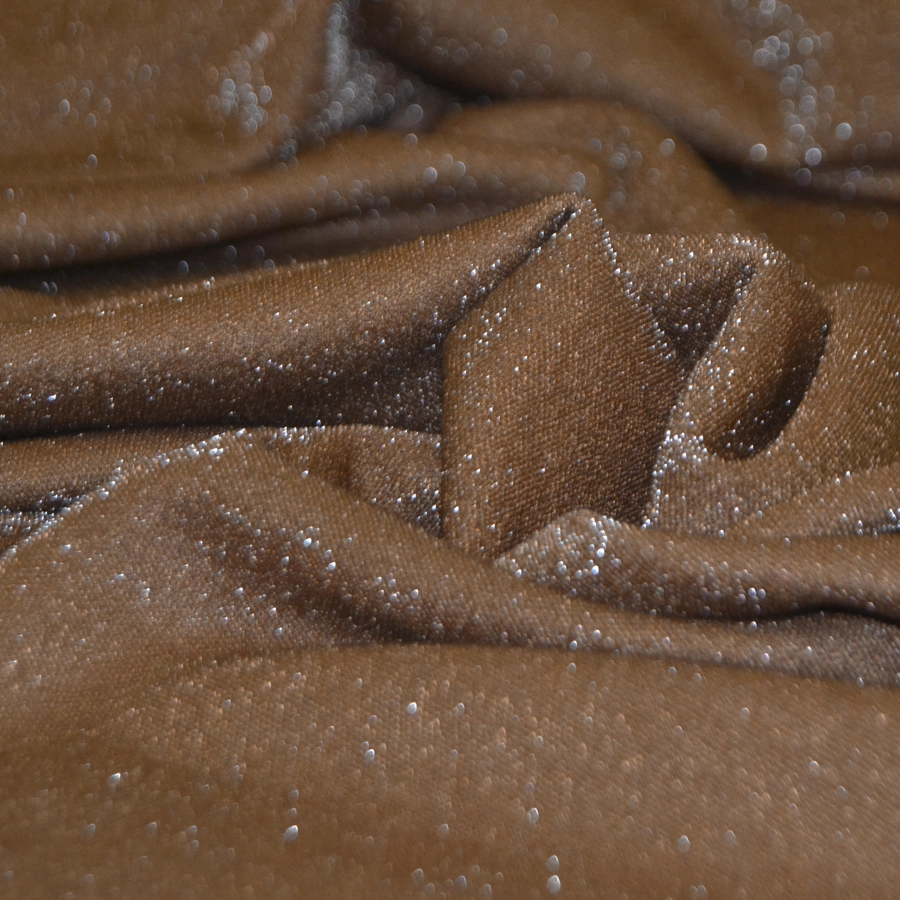 Вискозное трикотажное полотно - джерси терракотового цвета с тонкой нитью люрекса.