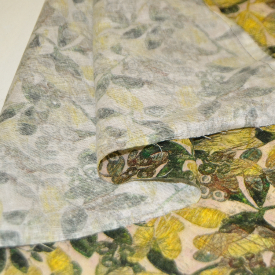 Ткань мягкая, поверхность с видимым льняным переплетением, тактильно приятная.