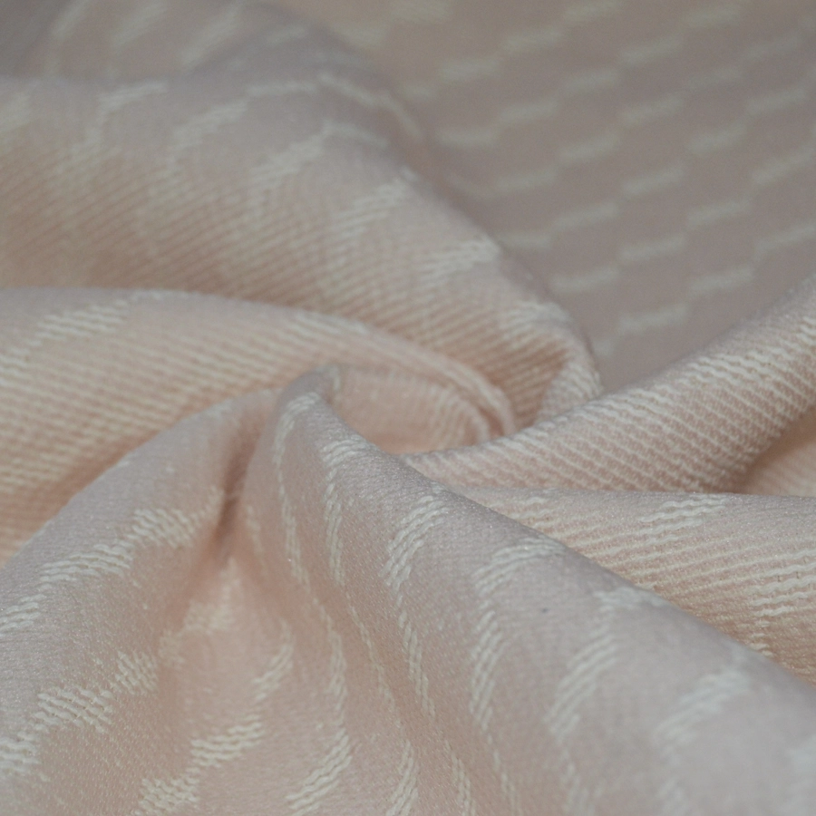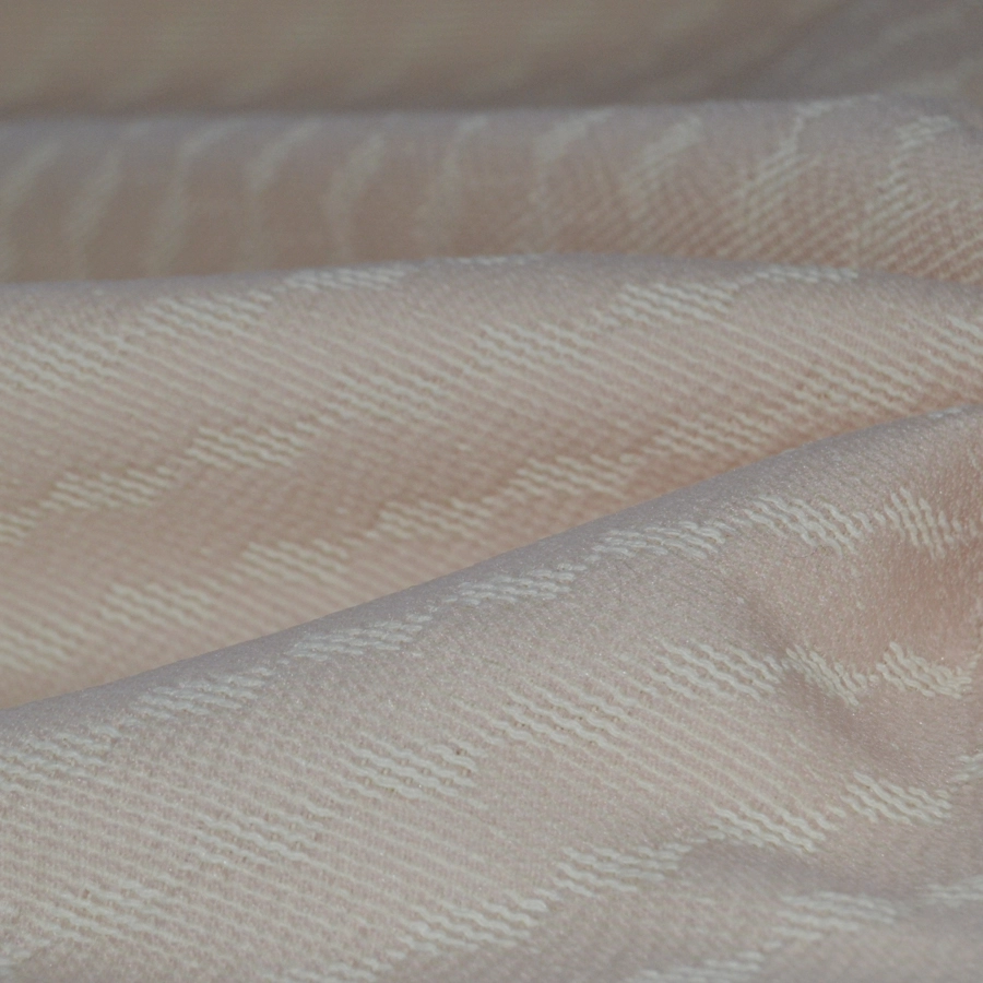 Красивый жаккард пудрово-розового цвета с объемными молочными нитями.
