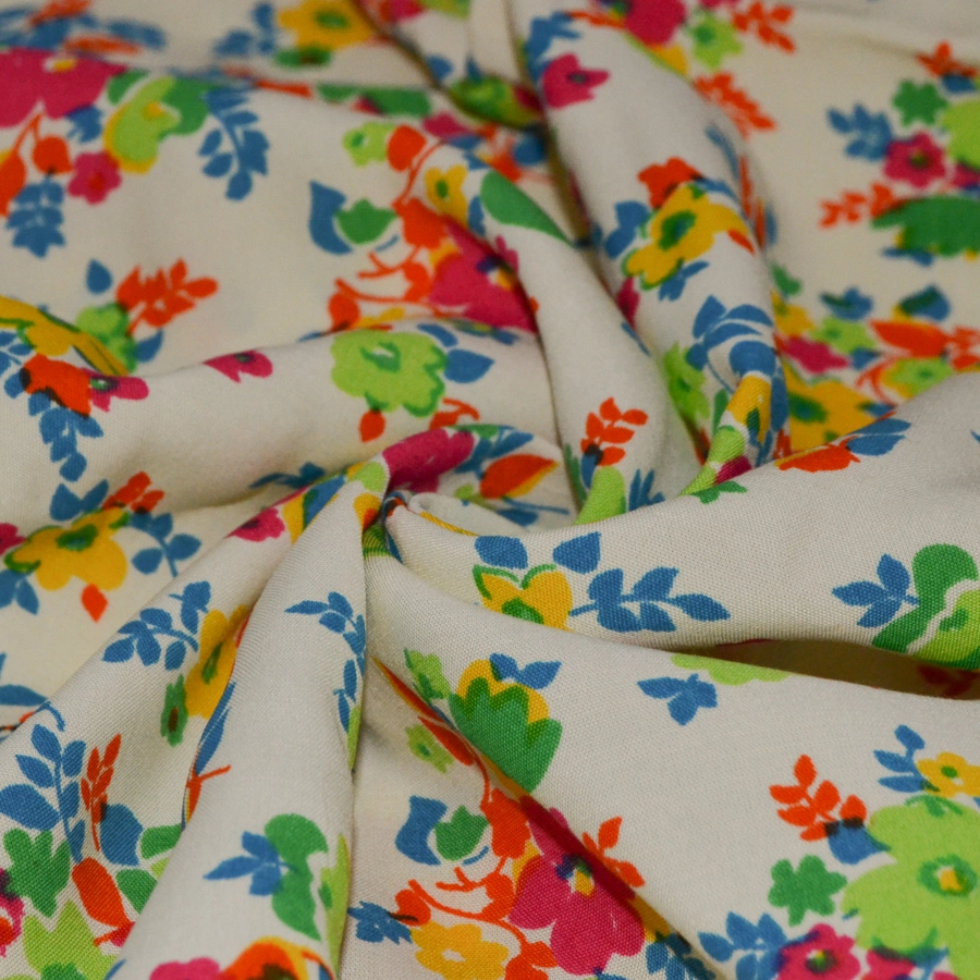 Такая вискозная ткань подойдет для сарафанов, платьев различного кроя, широких брюк,летних комбинезонов, юбок, рубашек и туник.