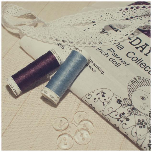 Нитки, ножницы, булавки, кучосек хлопкового узкого кружева, кнопки для застежки или маленькие незаметные пуговки.