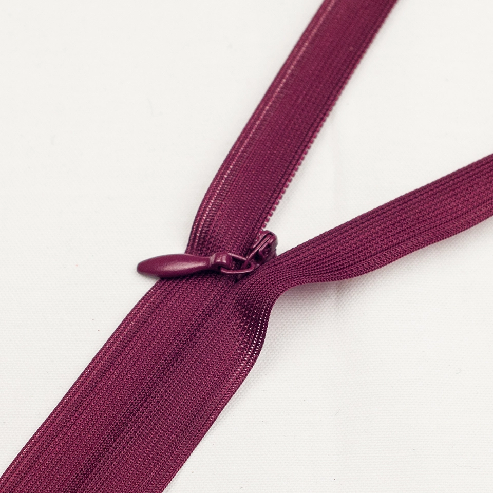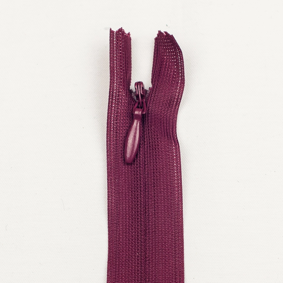 Потайная молния бордового цвета, длина 22 см. Внимание, если Вам нужно подобрать молнию к изделию, укажите в комментарии к заказу, и мы Вам поможем с выбором.