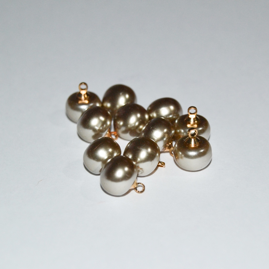 Пришивная блузочная пуговица в виде жемчужины золотистого цвета на металлической ножке- петельке.