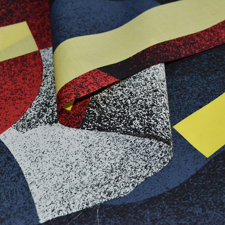 Крупный абстрактный принт в сочетании светло-серого, темно-синего и бордового.