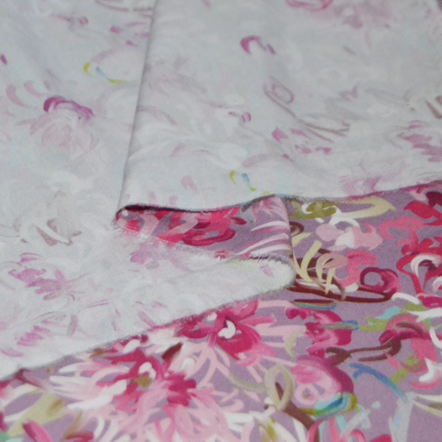 Ткань тонкая, мягкая, легкая. Поверхность шелковистая, очень приятная тактильно, блеска нет, матовая.