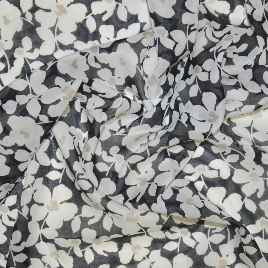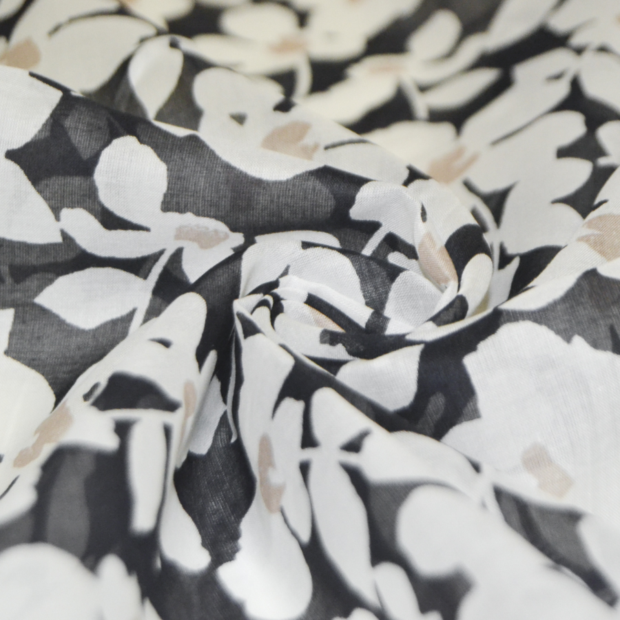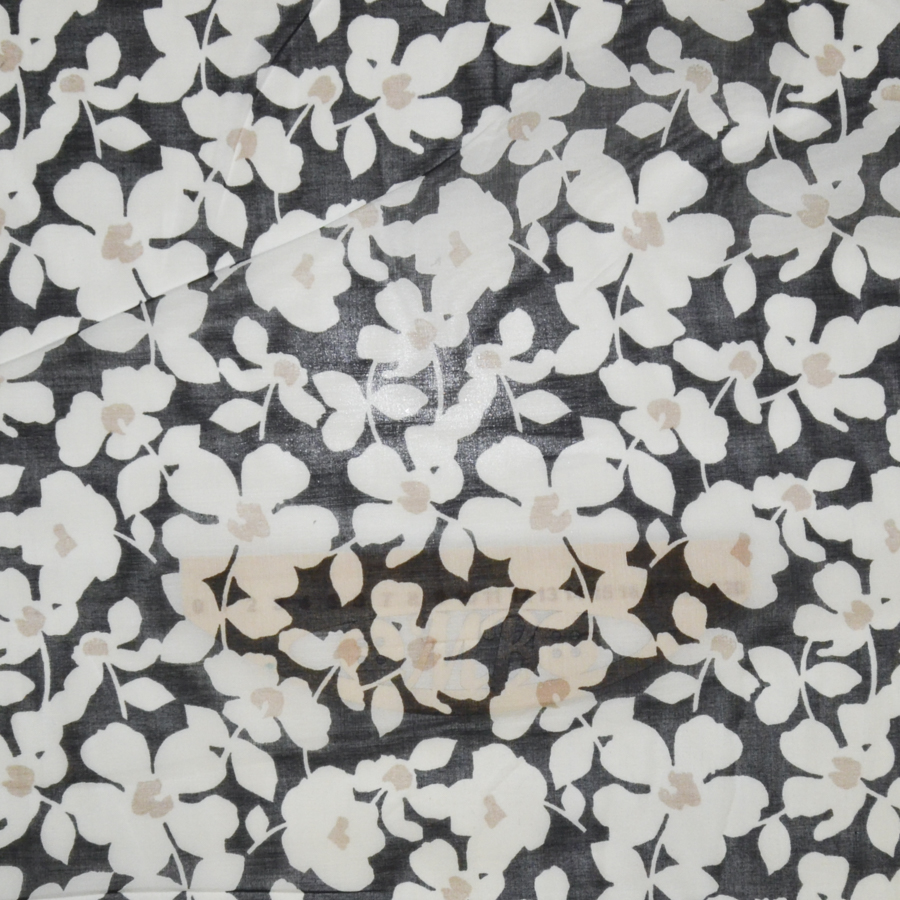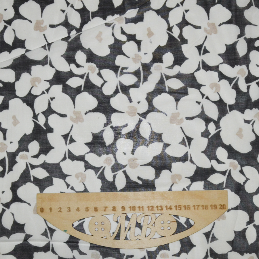 На черном фоне белые цветы с бежевой серединкой.