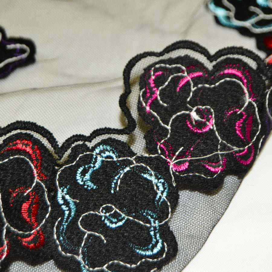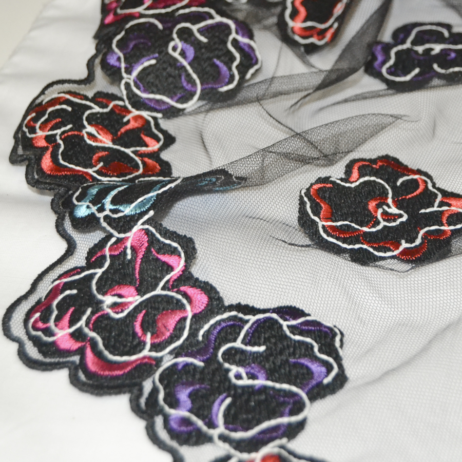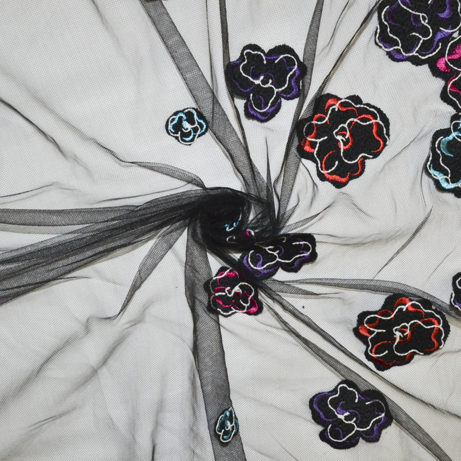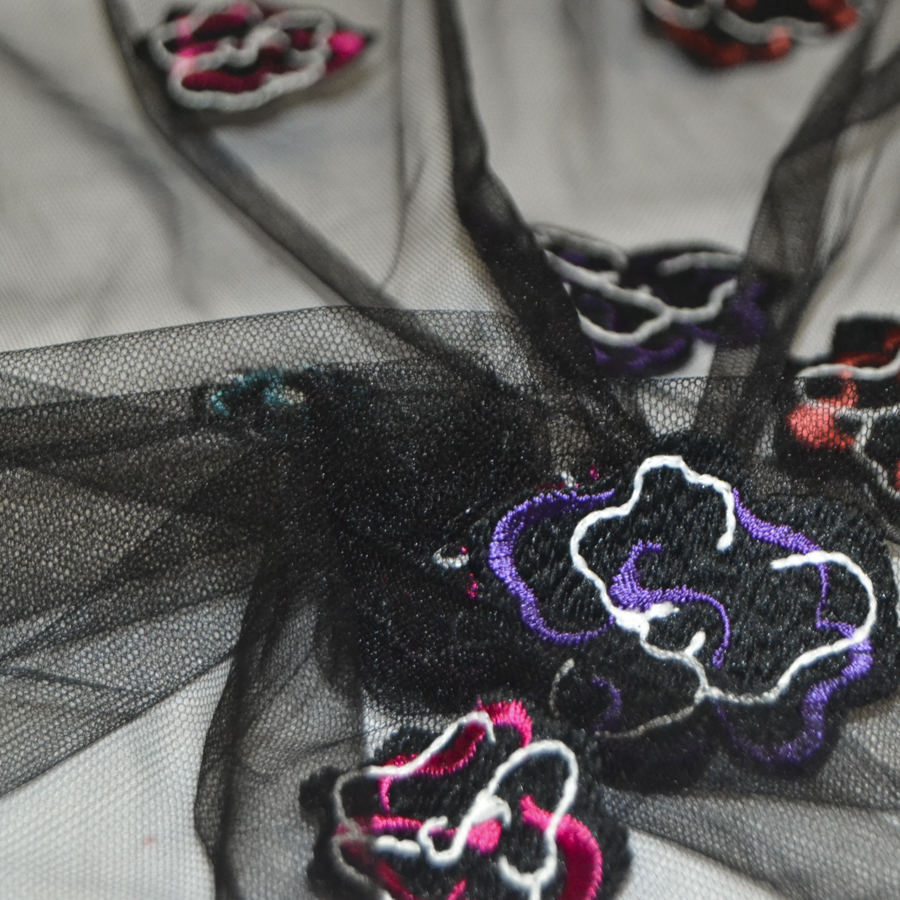 Цветочная вышивка на тонкой, не эластичной сетке.