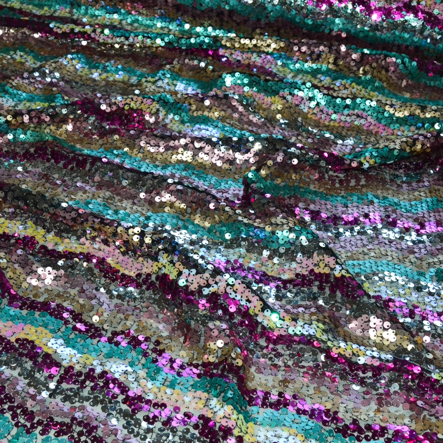 Разноцветные пайетки расположены горизонтальными неширокими "волнами" по всему полотну.