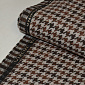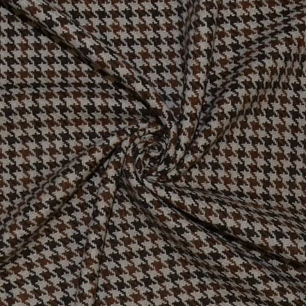 Бежевый цвет основы и узор гусиная лапка образованный переплетением нитей коричневого и тёмно-коричневого цвета.
