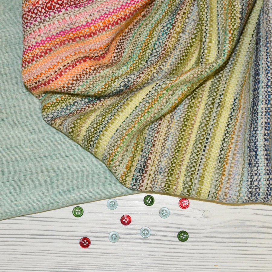 Такая ткань отлично подойдет как на костюм в стиле Шанель, так и на бомбер или легкое пальто.