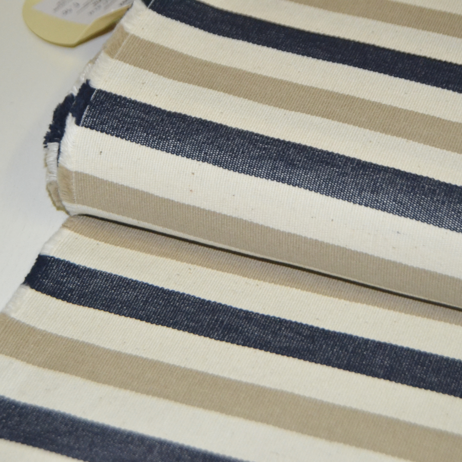 Тонкий плательно-костюмный канвас с горизонтальной полоской, который идеально подходит для пошива летних изделий.