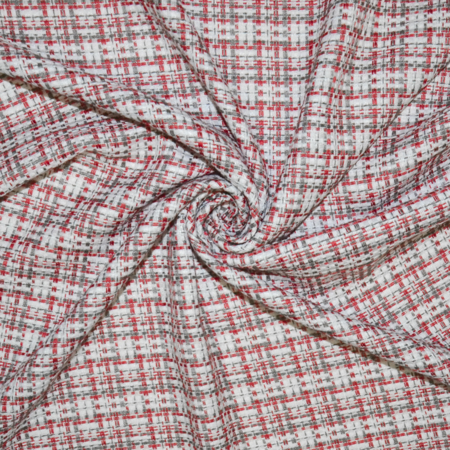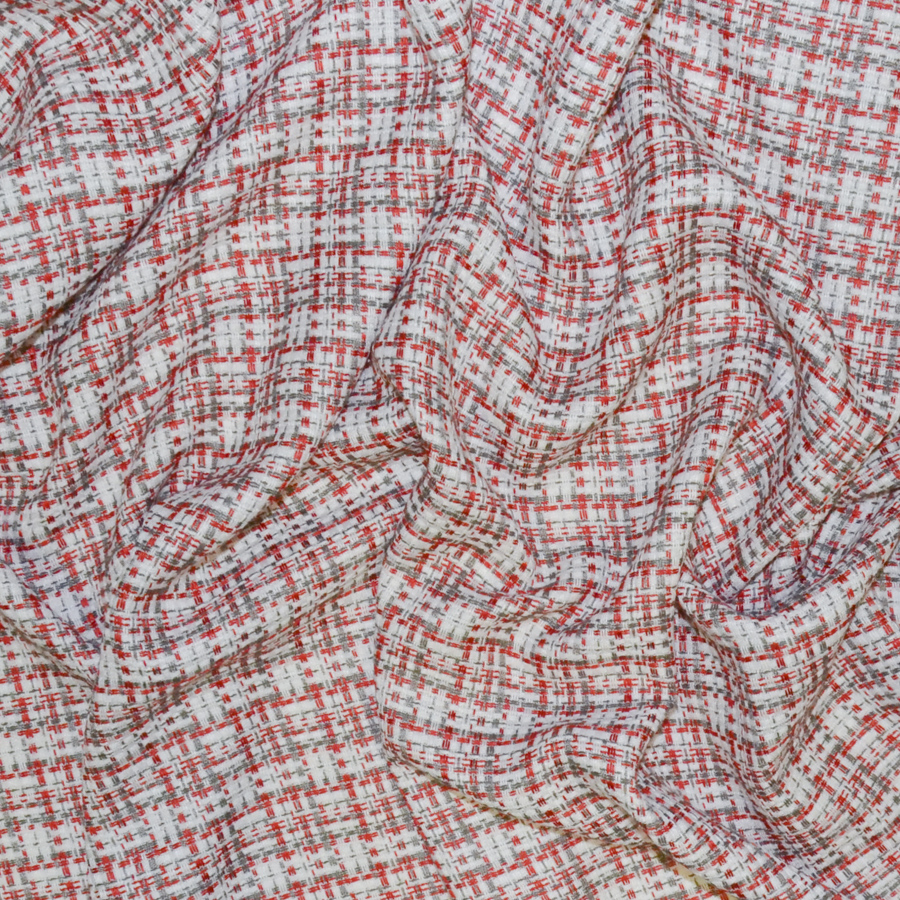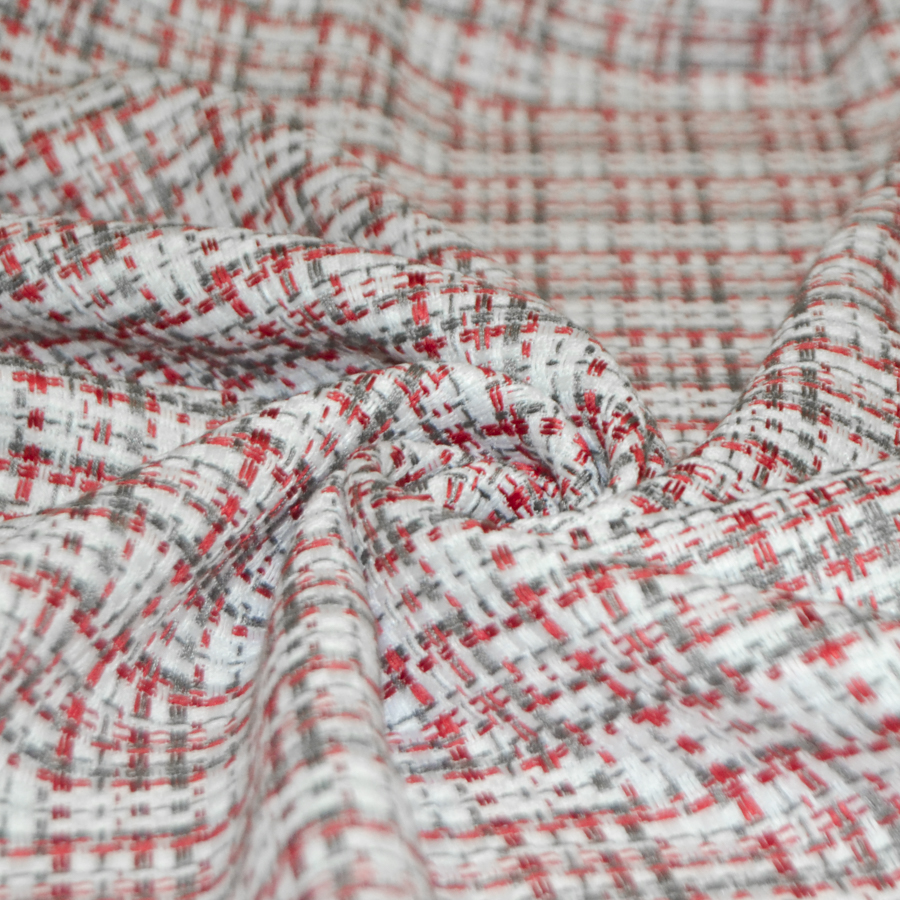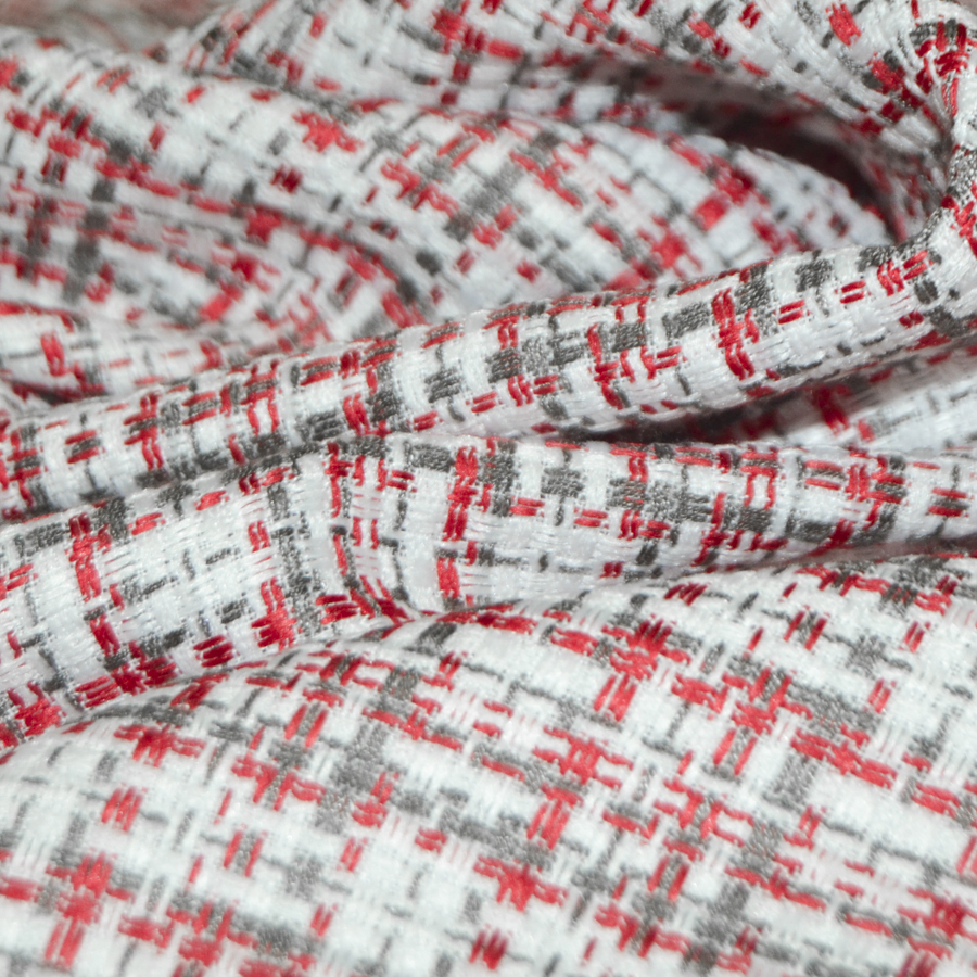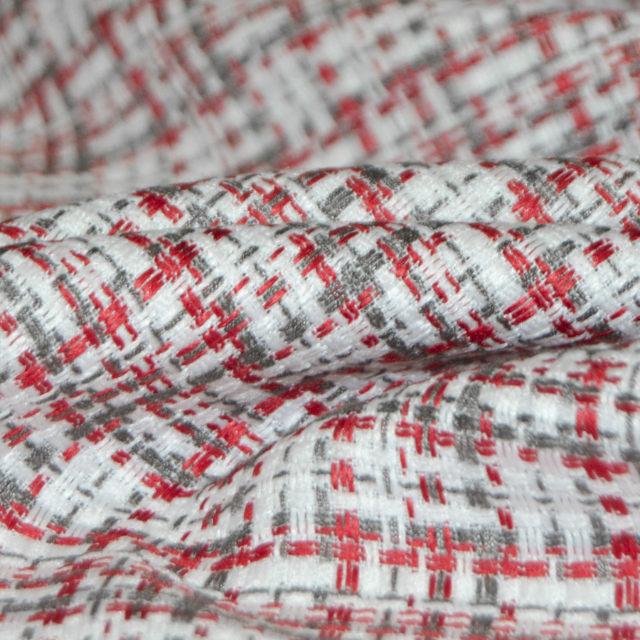 Фон белого цвета и изящная клетка, образованная толстенькими пасмами красного и оливкового цветов