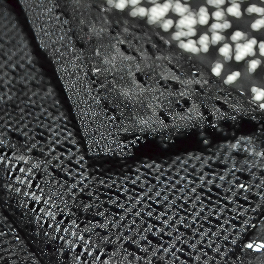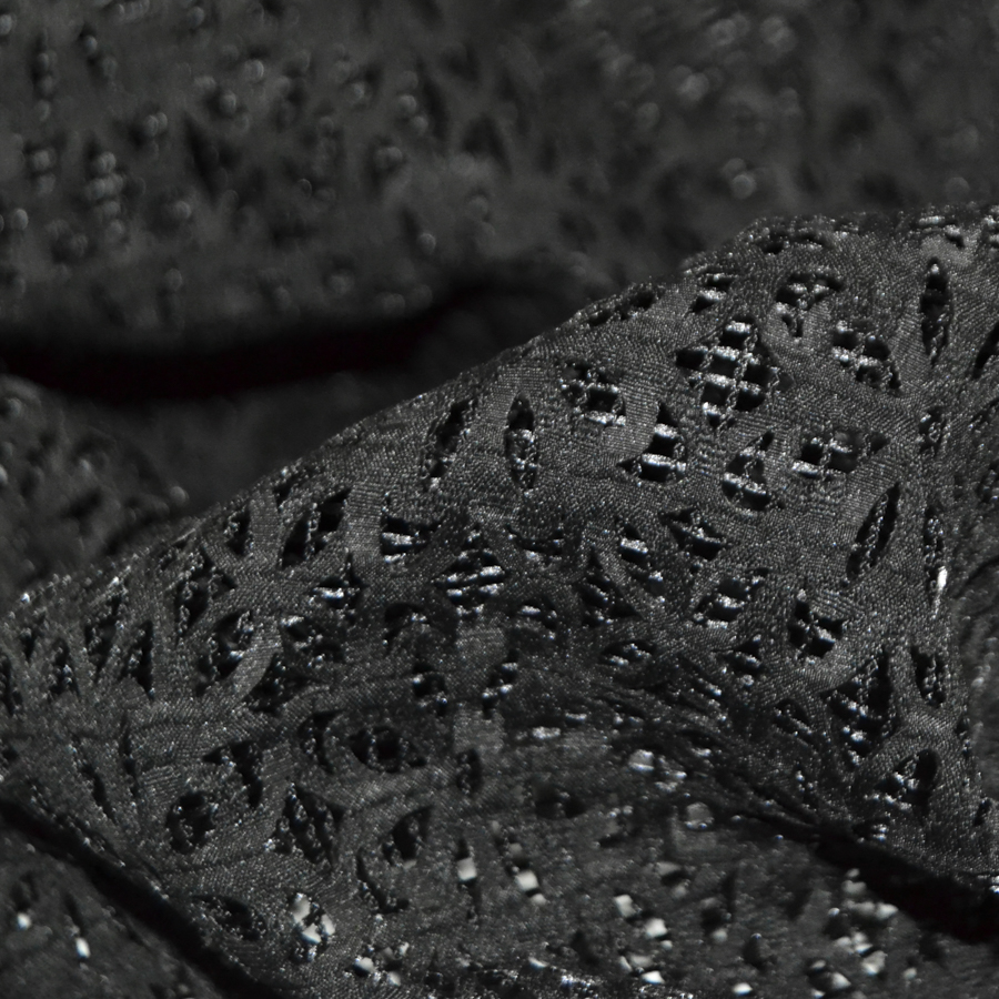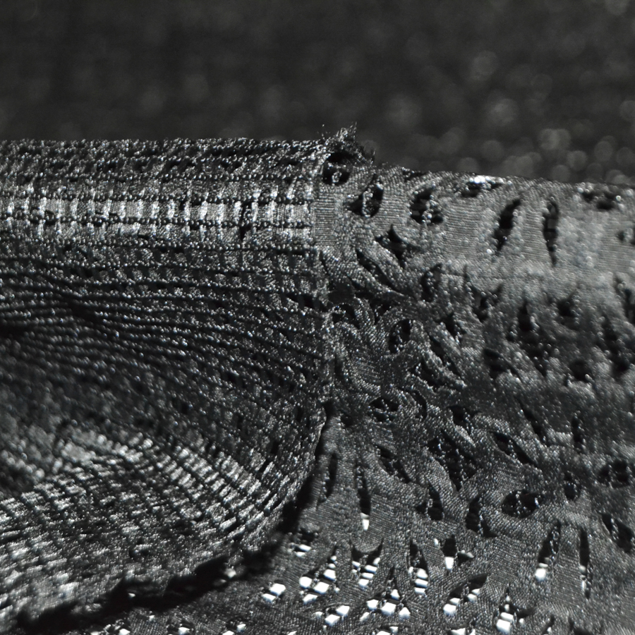 Плотная черная основа служит идеальным фоном для тонкой, филигранно выполненной ткани, имитирующей резное кружево.