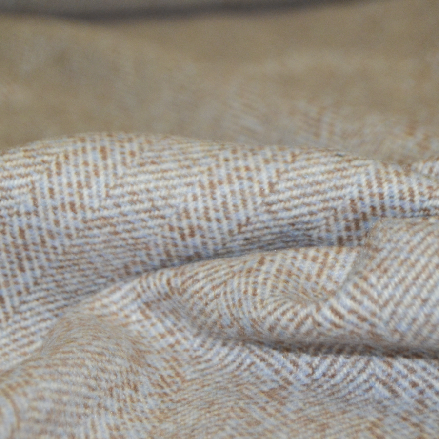 Бежевые, нежно-голубые и молочные нити сплетаются в благородный узор "херри боу", напоминая о вечной элегантности.