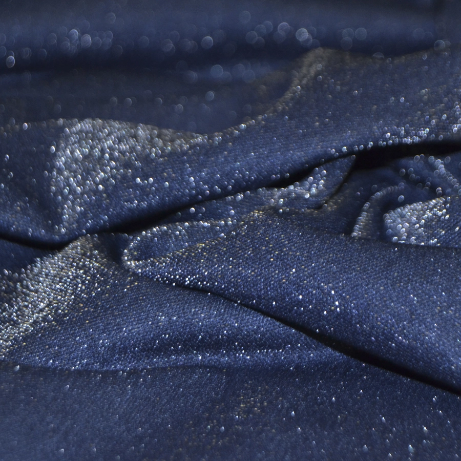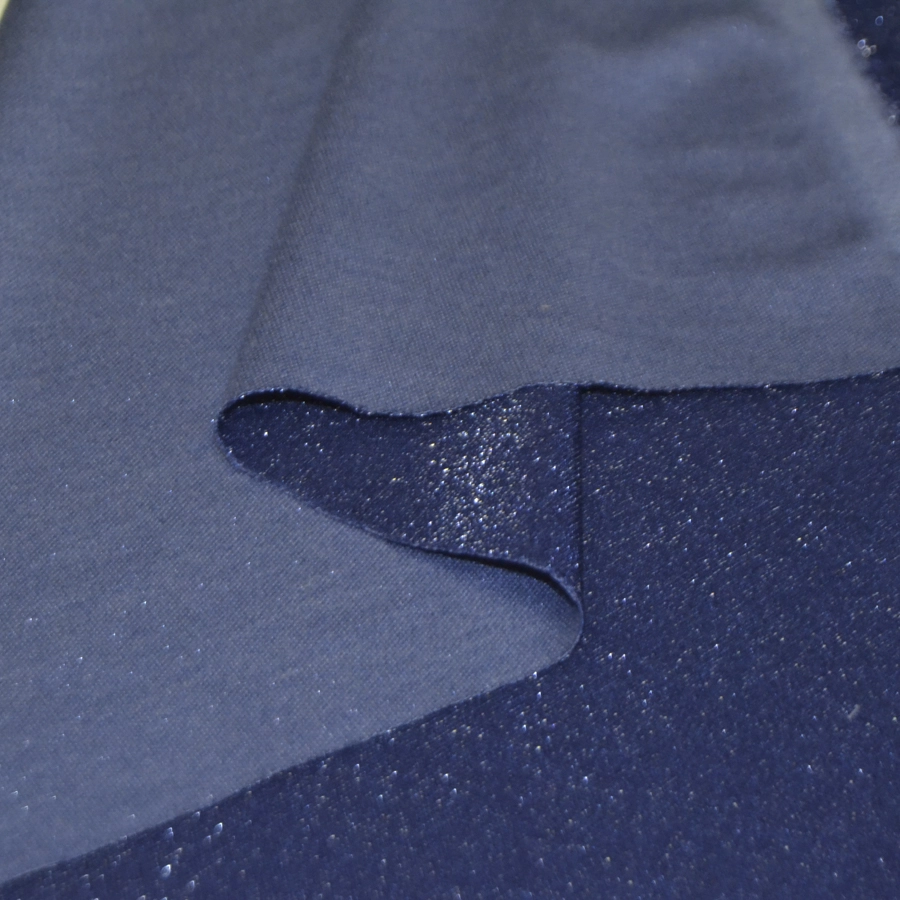 Лицевая сторона с деликатным серебристым блеском. Изнаночная - матовая, шелковистая. Тактильно люрекс совершенно не ощущается, даже с лицевой стороны.