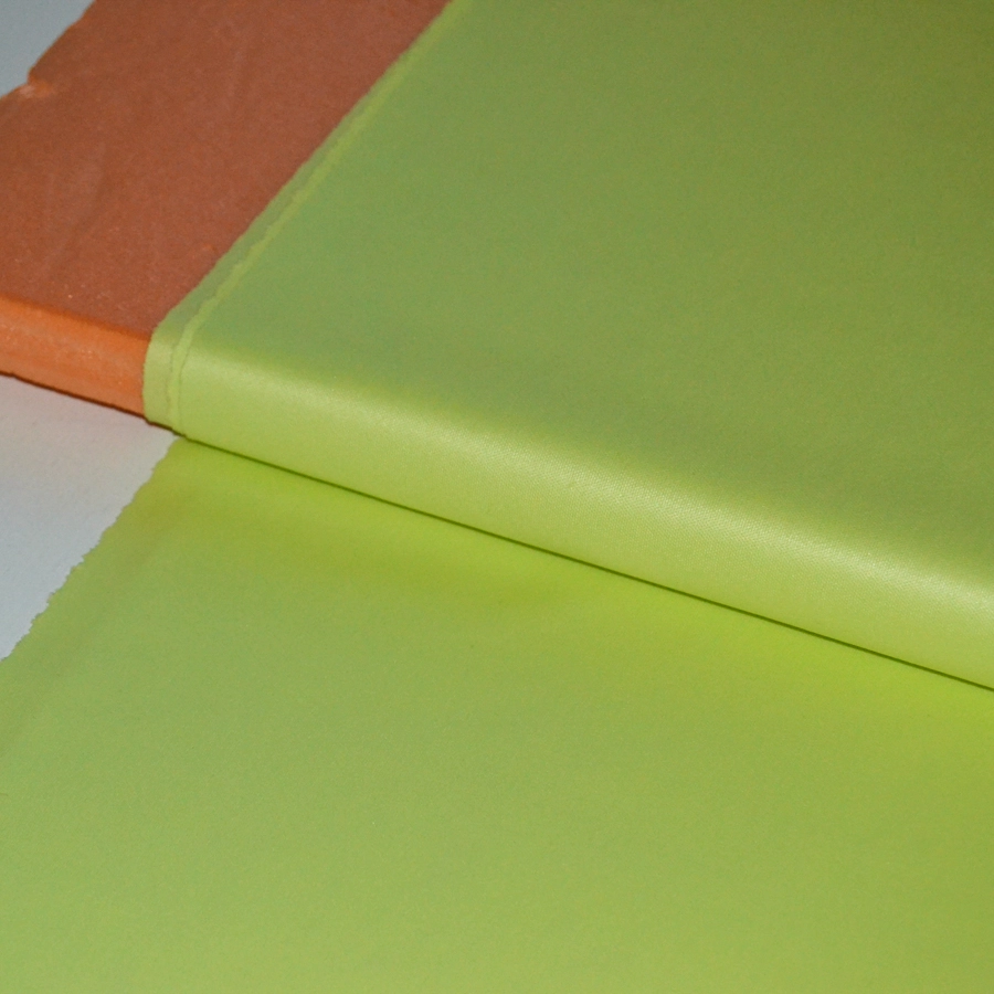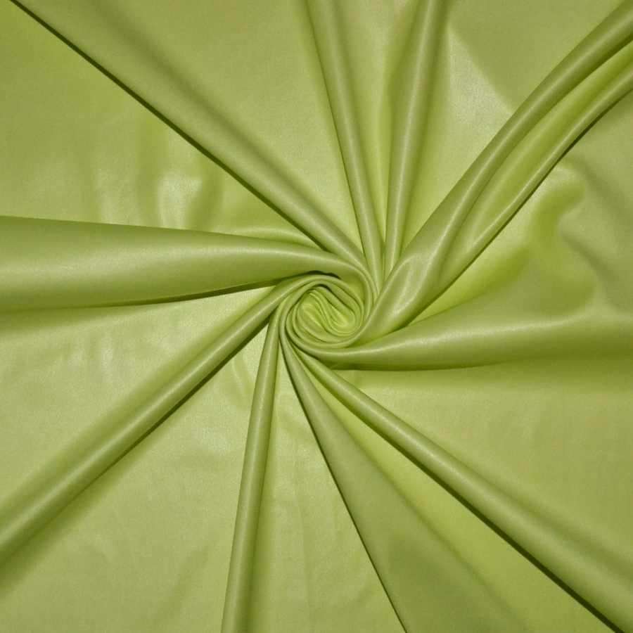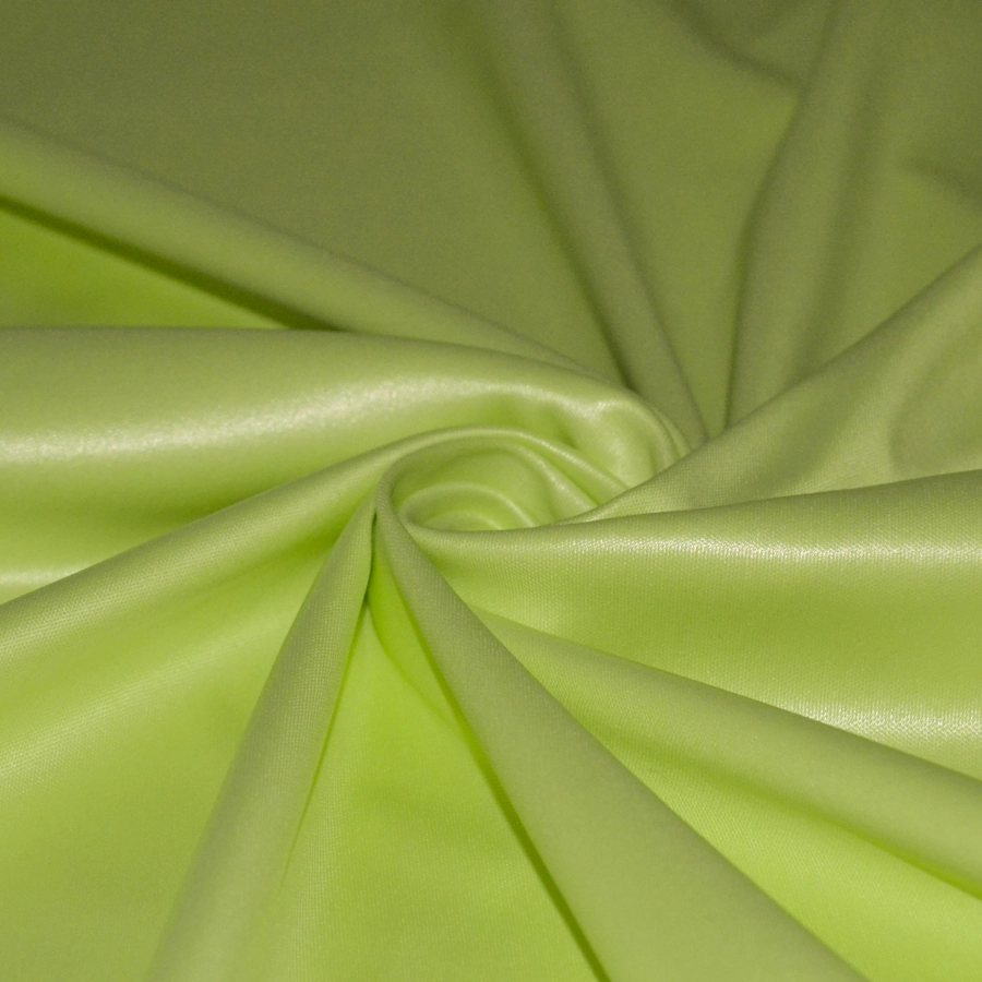 Трикотаж бифлекс с гладкой поверхностью и шелковистым ярким блеском салатового неонового цвета.