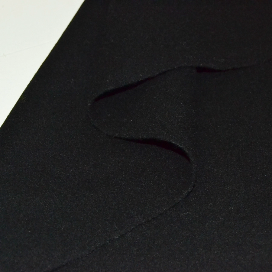 Великолепный образец пальтовой ткани - драп производства РСФСР из 100% мериносовой шерсти черного цвета.