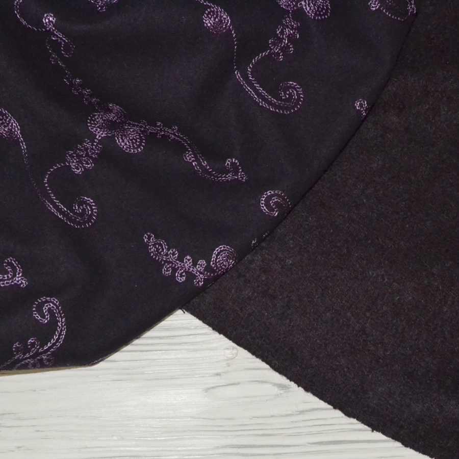 Пальтово-костюмная ткань из шерсти и мохера тёмно-фиолетового цвета.